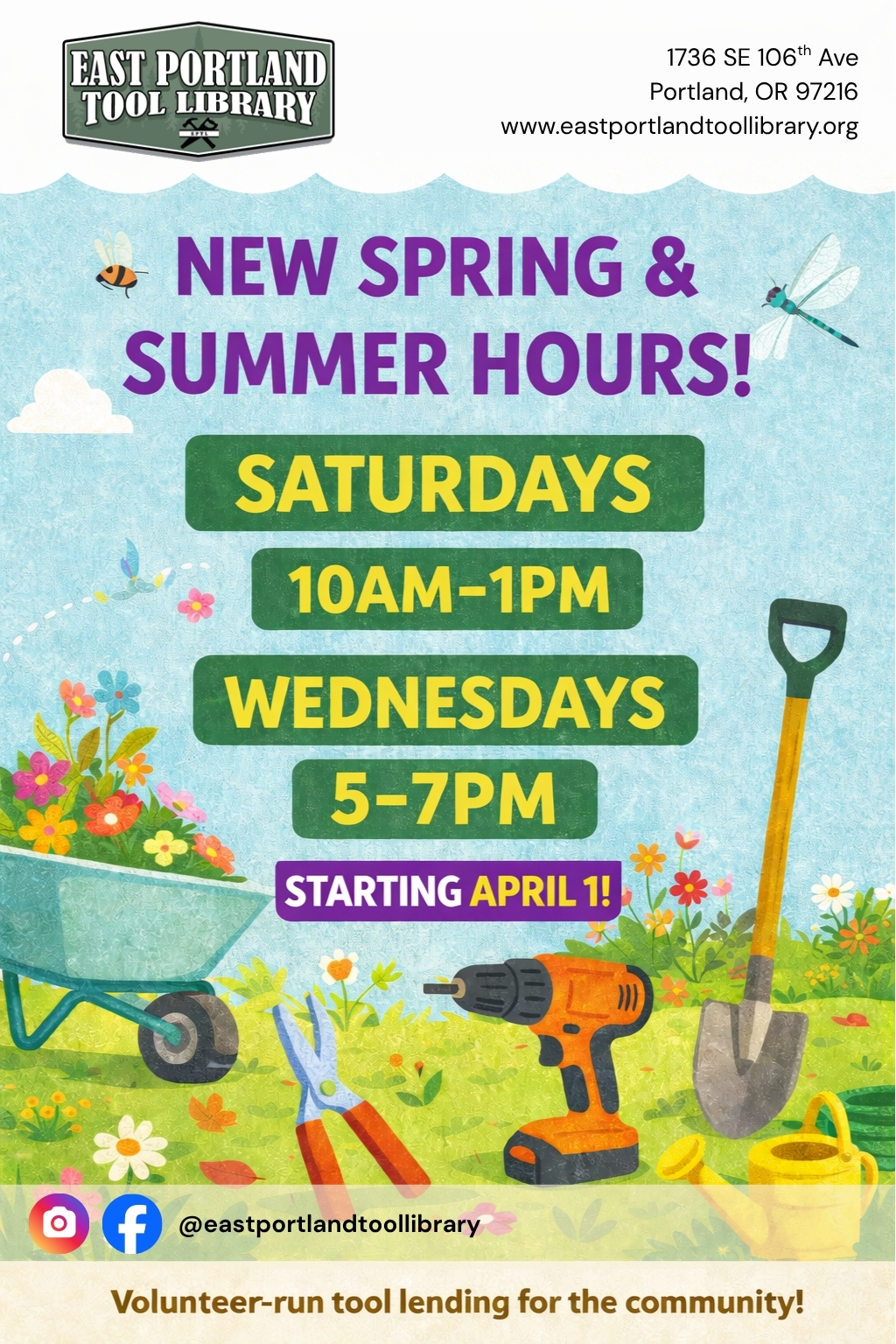 THE EAST PORTLAND TOOL LIBRARY LENDS TOOLS TO AREA RESIDENTS OF ALL INCOME LEVELS. OUR MISSION IS TO EMPOWER OUR NEIGHBORS TO BUILD A SUSTAINABLE AND THRIVING COMMUNITY.